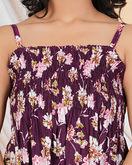 Stylish Wine Floral Cotton Kaftan Breezy, Beautiful & Chic