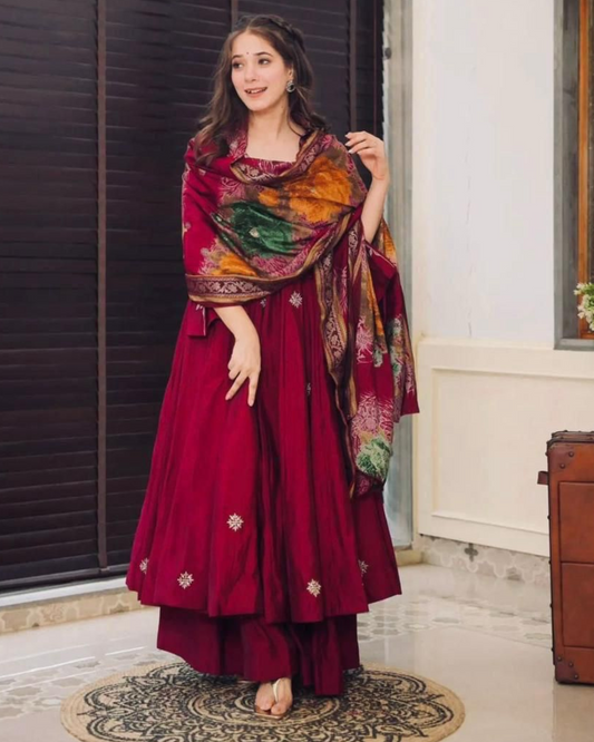 Chinon Embroidered Suit Set with Printed Dupatta Festive Elegance Redefined