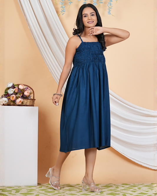 Stylish Rama Flower Bobin A-Line Kurti for a Graceful Look