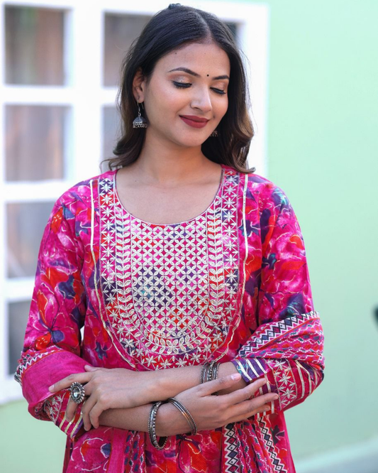 Shree Rani Cotton Embroidered Suit Set with Dupatta
