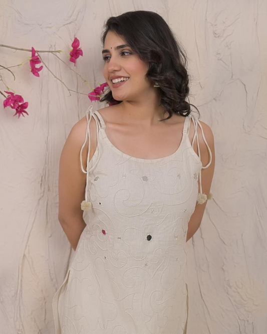 Elegant Cotton Embroidered Sleeveless Kurta with Palazzo