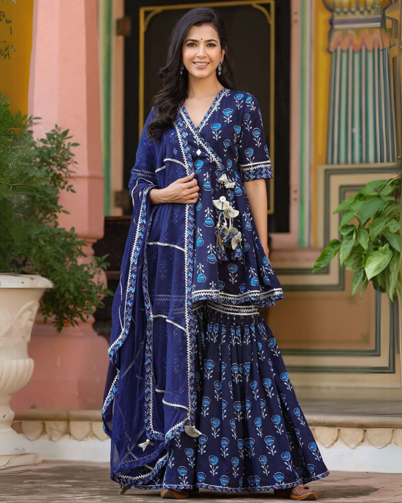 Rama Sarara Rayon Printed Kurta Set with Plazo and Dupatta